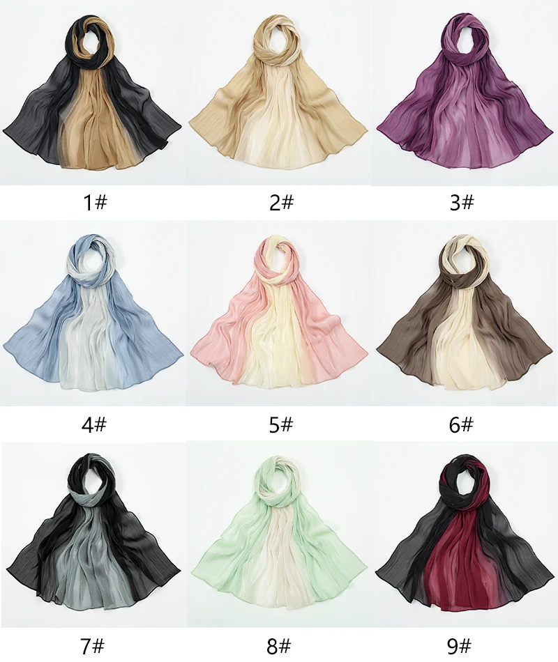 Gradient Twinkle Silk Hijab Scarf Muslim Women Hijab Plain Head Wraps Headscarf Shimmer Islam Turban Ramadan Head Cover 180*70cm