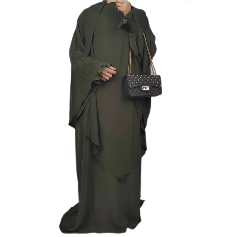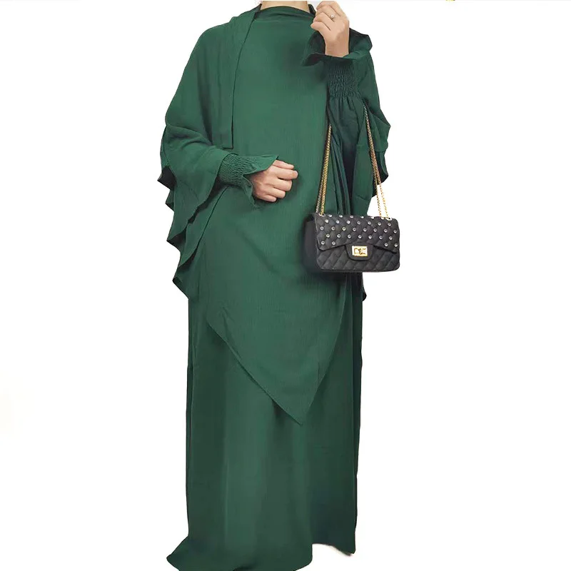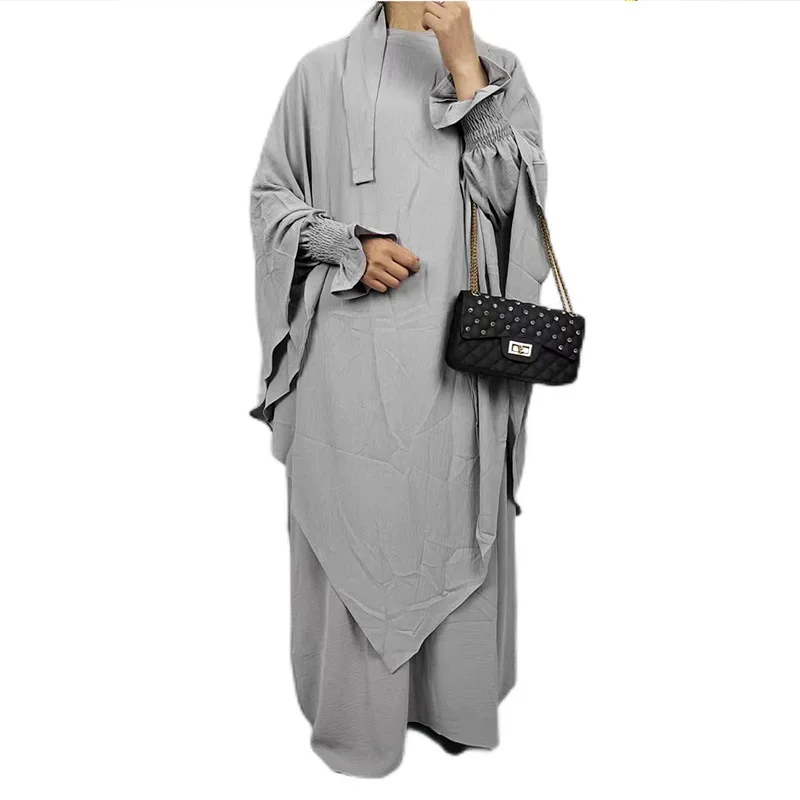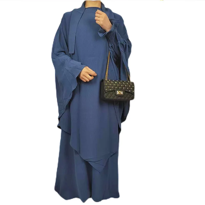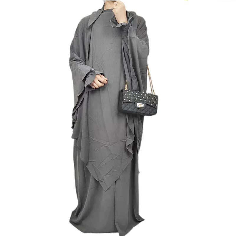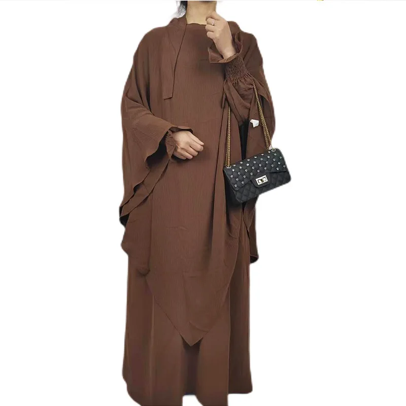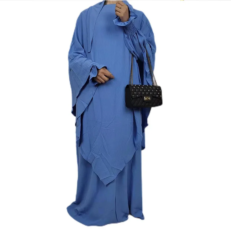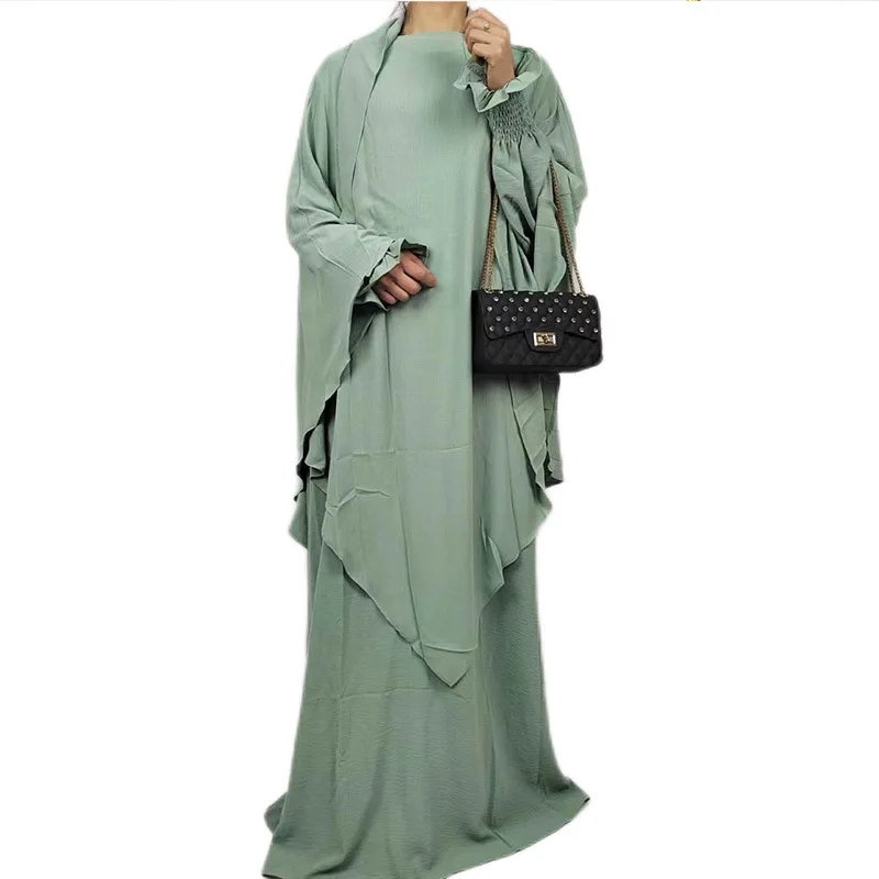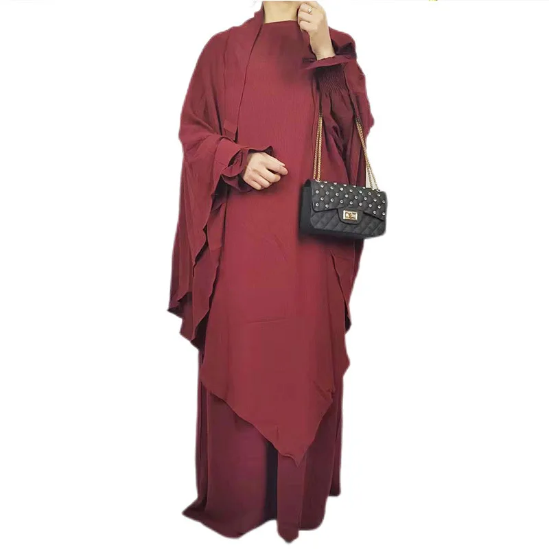 New Muslim New Prayer Garment Women Ramadan Islamic Jilbeb 2 Piece Set Dubai Turkish Modest Outfit Khimar Scarf Hijab+Long Dress